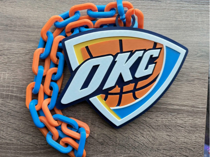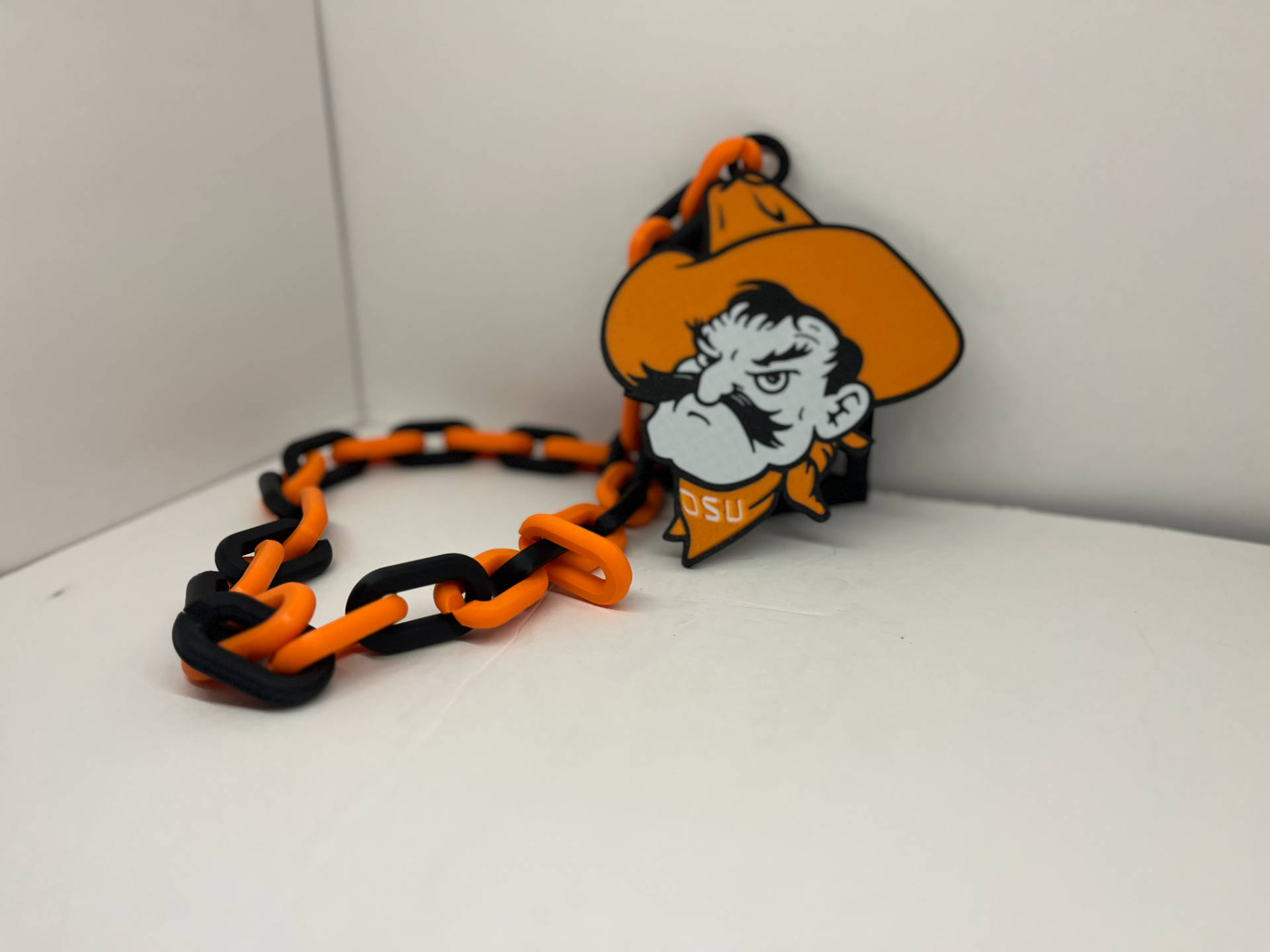 Make a bold statement with this eye-catching oversized “drip chain” featuring chunky, exaggerated links and customizable school or team logo pendants. Each chain is 3D printed in durable PLA or PETG filament.